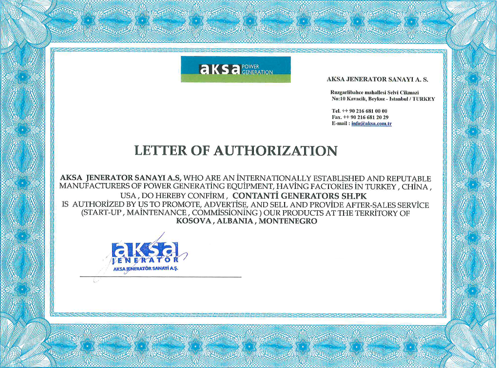 Contanti Generators SHPK është partner i autorizuar i shumë markave të njohura ndërkombëtarisht në fushën e gjeneratorëve dhe zgjidhjeve energjetike. Autorizimet zyrtare nga prodhuesit dëshmojnë se ne përmbushim standardet më të larta të cilësisë teknike, të sigurisë dhe të shërbimit. Kjo i jep klientëve tanë sigurimin se çdo produkt dhe shërbim i ofruar nga ne është autentik, i certifikuar dhe mbështetet nga prodhuesi origjinal.